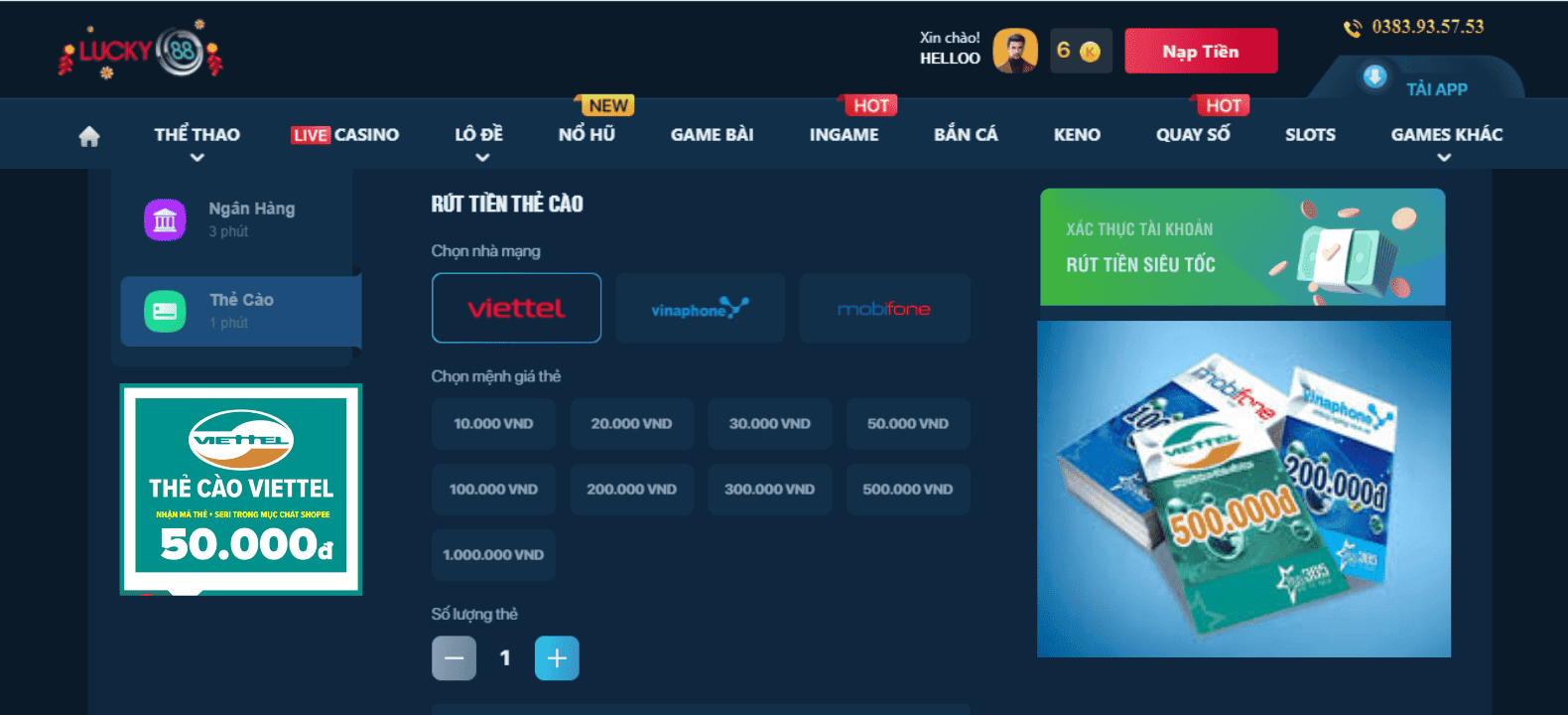 Hướng dẫn nạp tiền LUCKY88 nhanh và an toàn